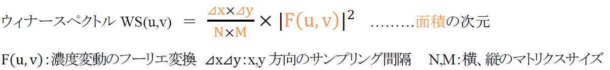 :ノイズ量を空間周波数ごとに示す。自己相関関数をフーリエ変換して得られる。