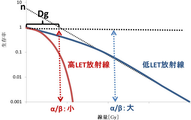 αD=βD2のときの線量D=α/βとする(各組織・細胞毎の定数)